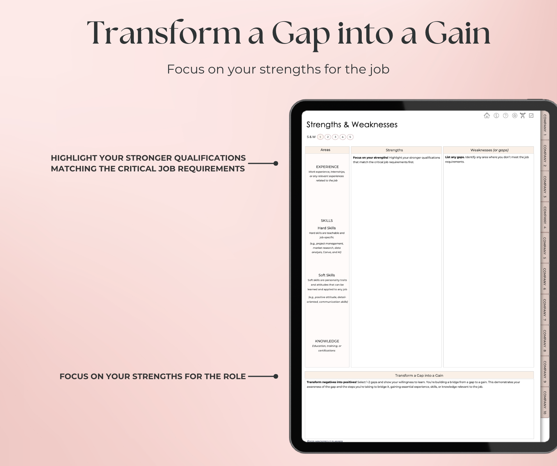 - Transform Gaps into Gains: Bridge any gaps using the strengths and weaknesses template to guide you