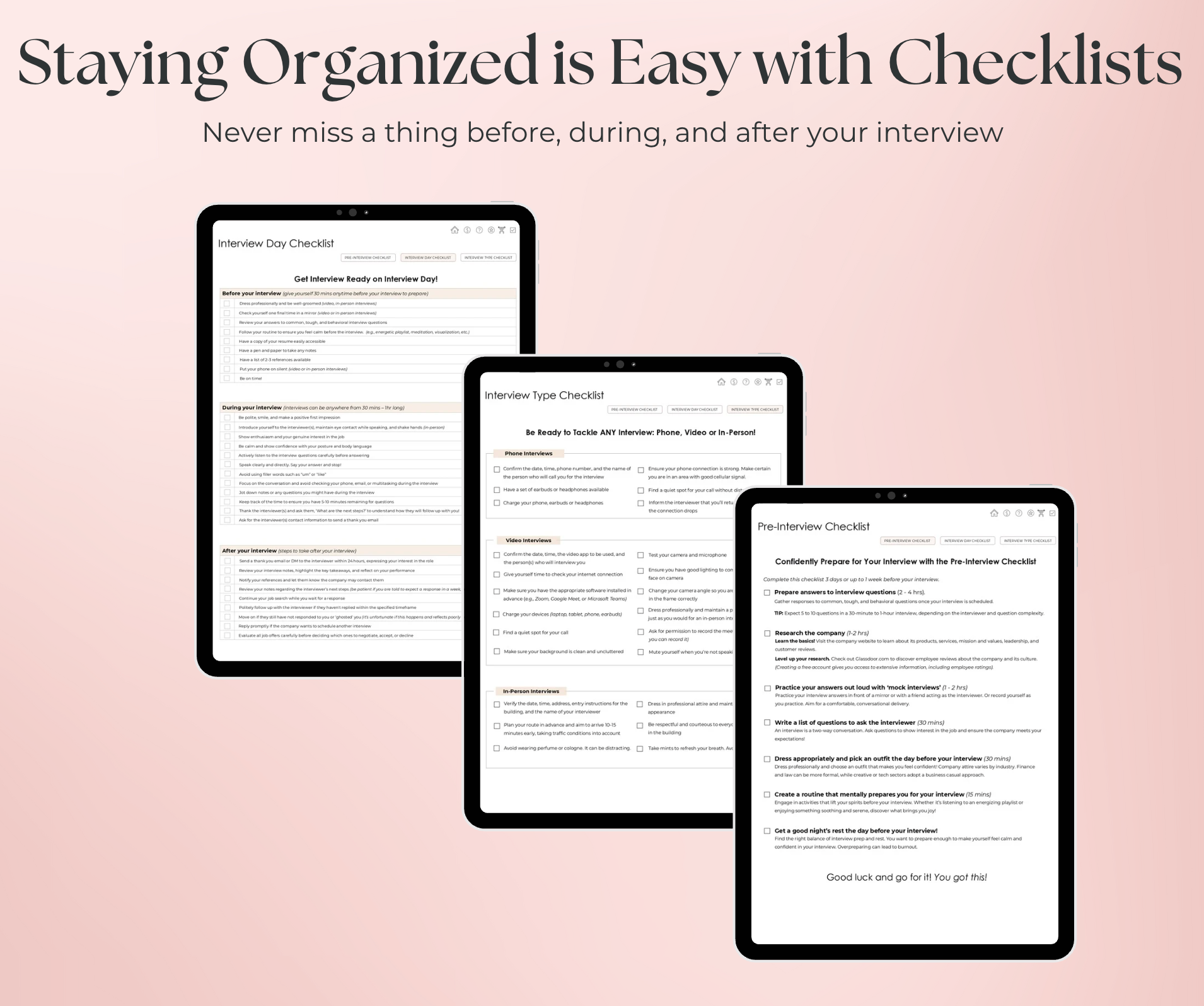 - Interview Preparation Checklists: Never miss a thing before, during, and after your interview