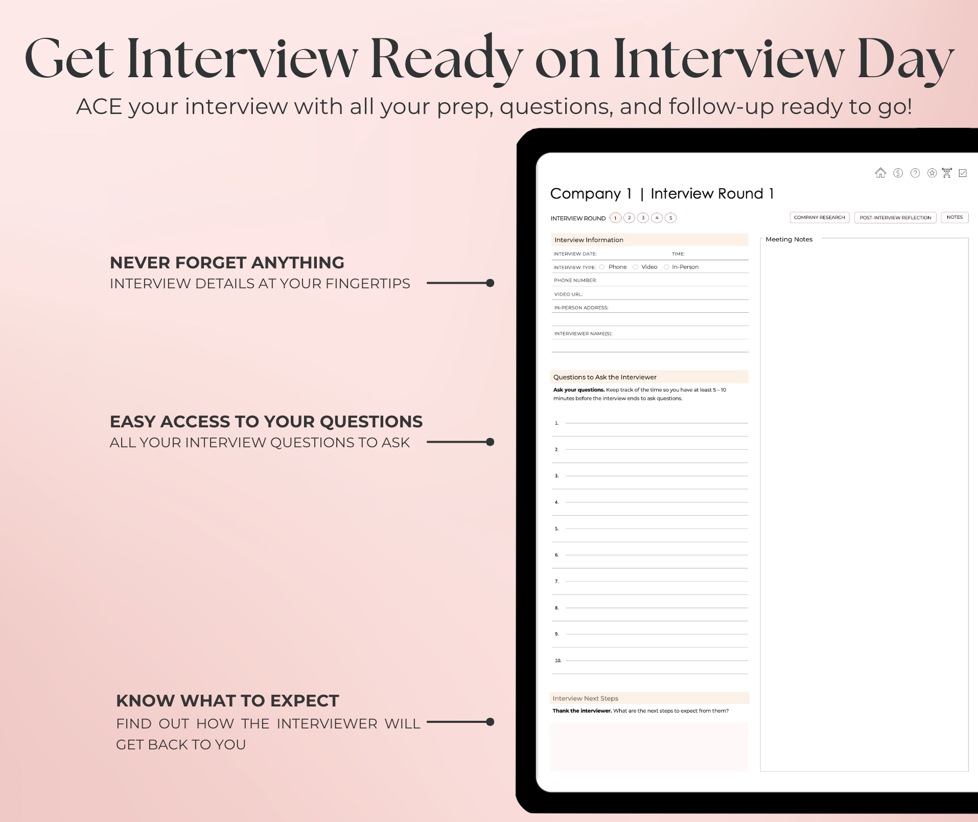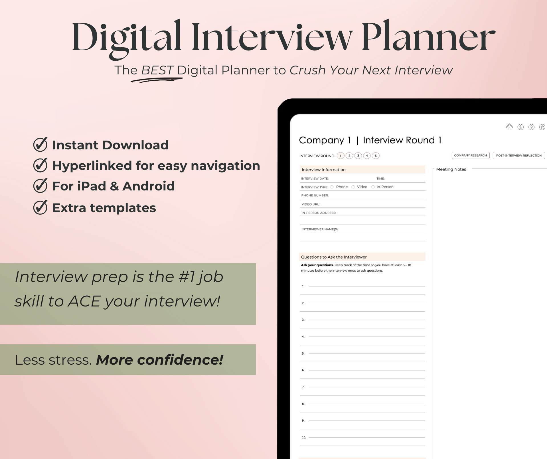 Crush your next interview! This is the BEST digital planner for improving your interview skills to ace your interview and get hired!