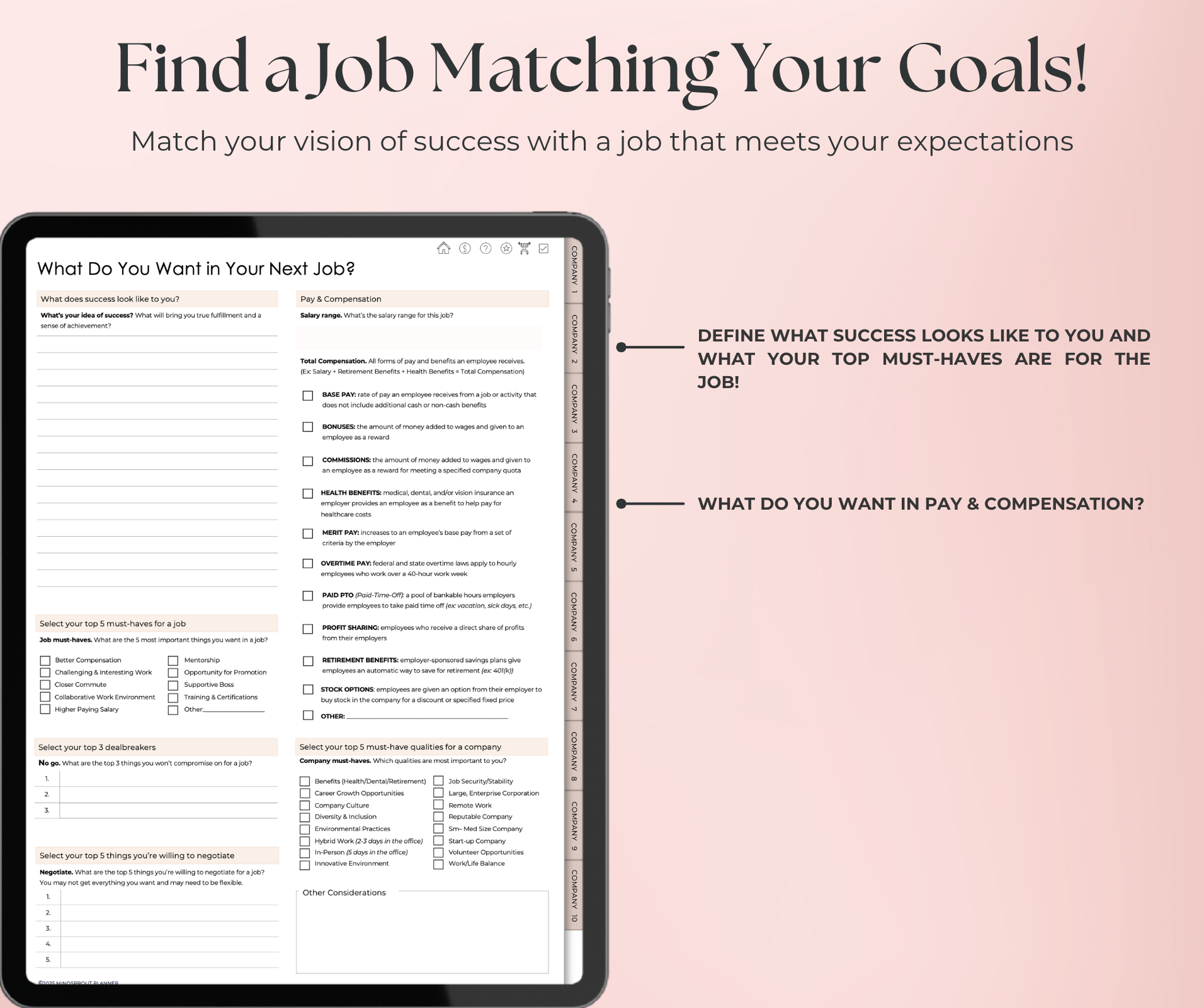 - Define what success looks like to you! What's your salary range? What are your top must-haves for your next job? You get all the things you want to think about before accepting that offer!