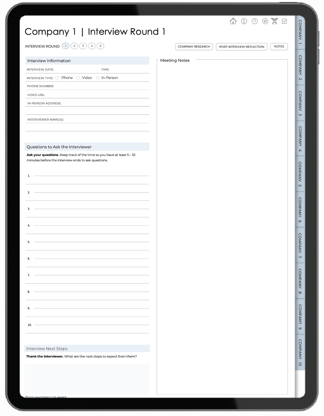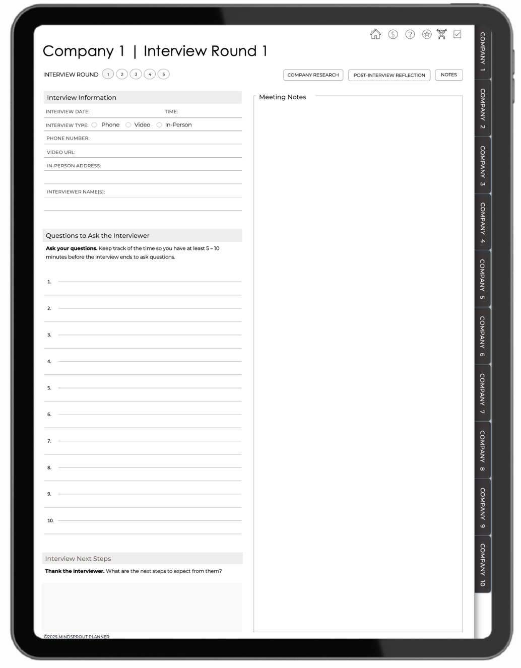 Success comes from preparation! The MindSprout Interview Planner is your go-to digital planner for managing all your interview prep in one place. Say goodbye to interview anxiety and hello to confident conversations!